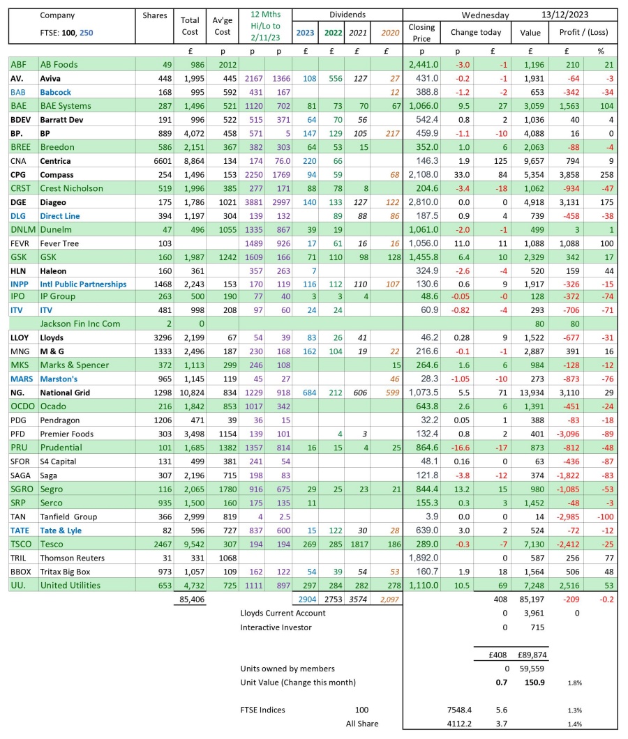 as at close of business Wednesday 13 December 2023