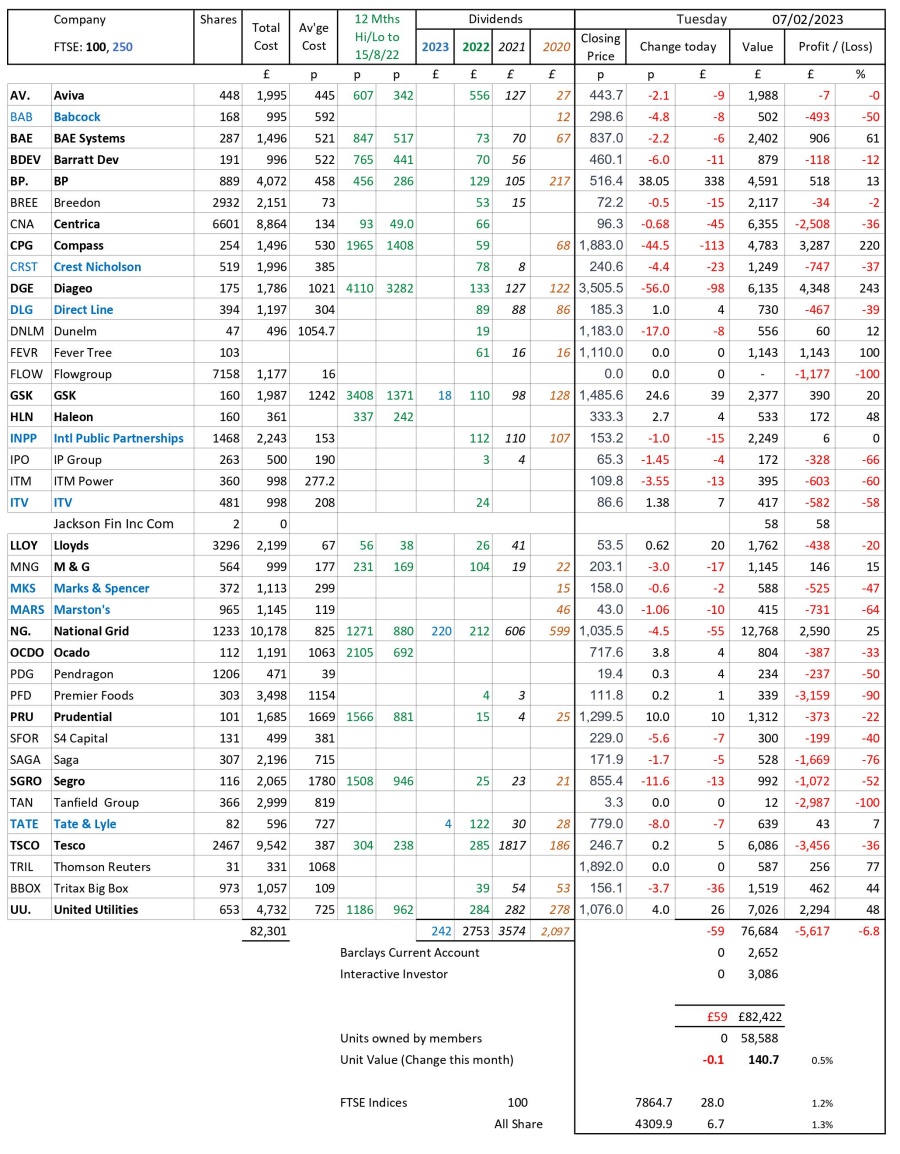 as at close of business Tuesday 7 February 2023