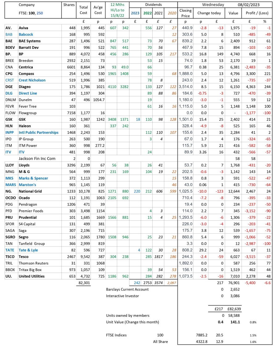 as at close of business Wednesday 8 February 2023