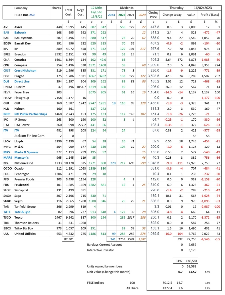 as at close of business Thursday 16 February 2023