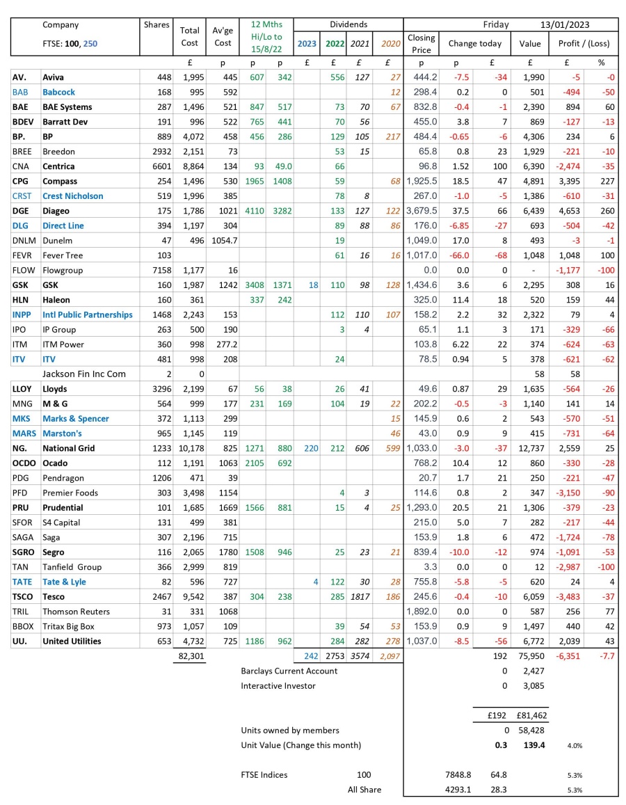 as at close of business Friday 13 January 2023