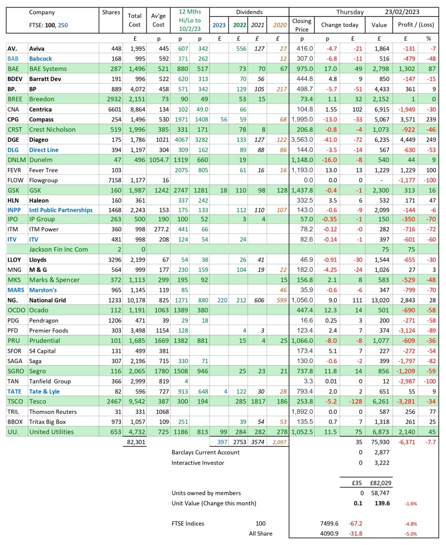 as at close of business Thursday 23 March 2023