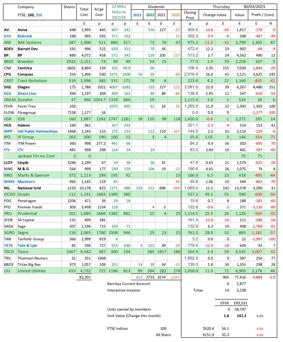 as at close of business Thursday 30 March 2023