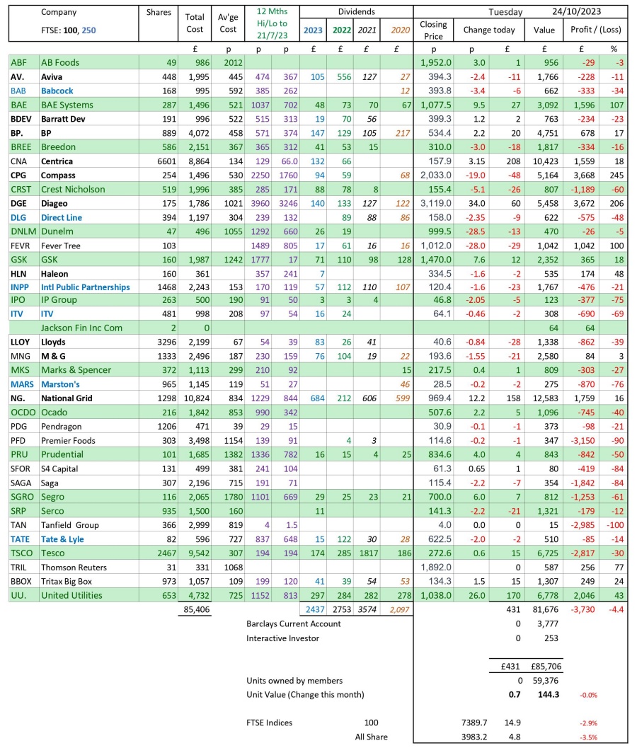 as at close of business Tuesday 24 October 2023