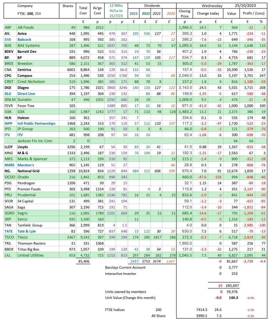 as at close of business Wednesday 25 October 2023