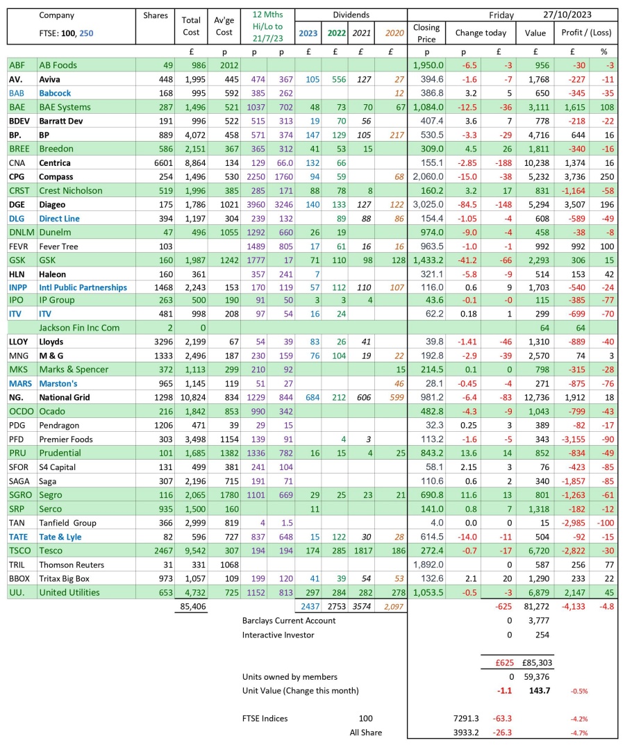 as at close of business Friday 27 October 2023