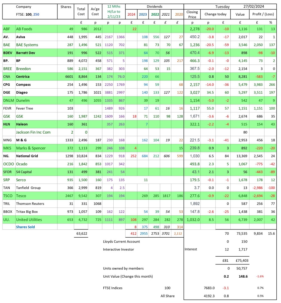 as at close of business Tuesday 27 February 2024