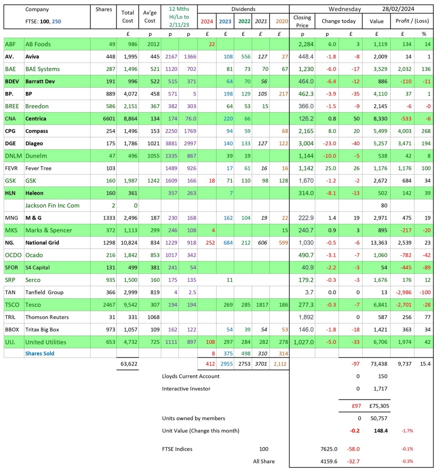 as at close of business Wednesday 28 February 2024