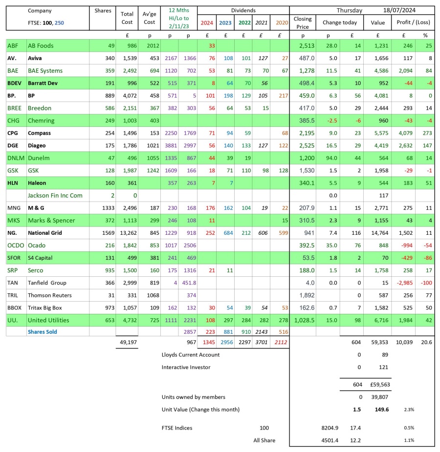 as at close of business Thursday 18 July 2024