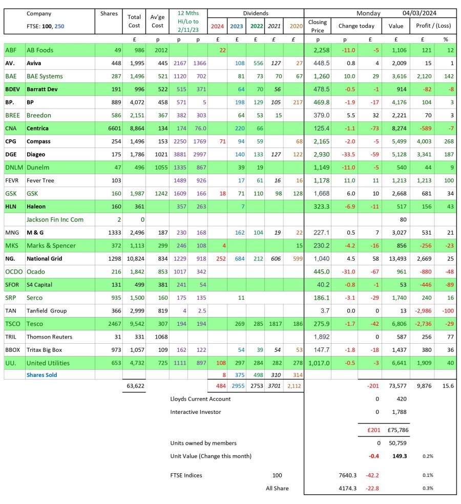 as at close of business Monday 4 March 2024