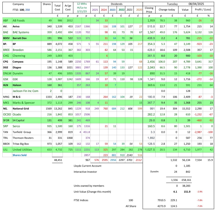 as at close of business Tuesday 8 April 2025