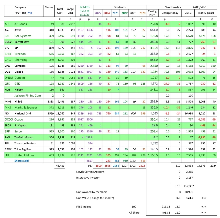 as at close of business Wednesday 6 August 2025