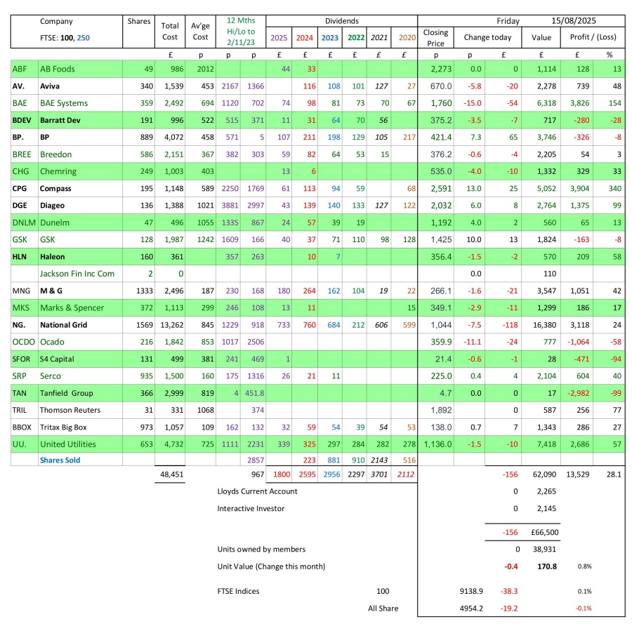 as at close of business Friday 15 August 2025