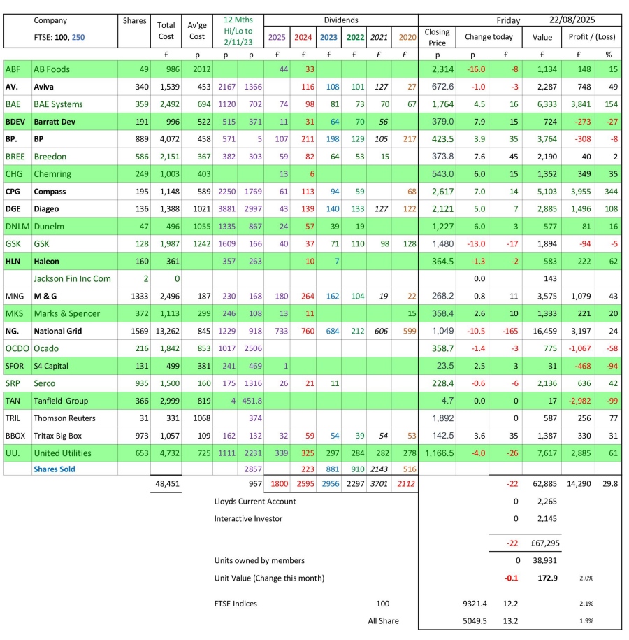 as at close of business Friday 22 August 2025