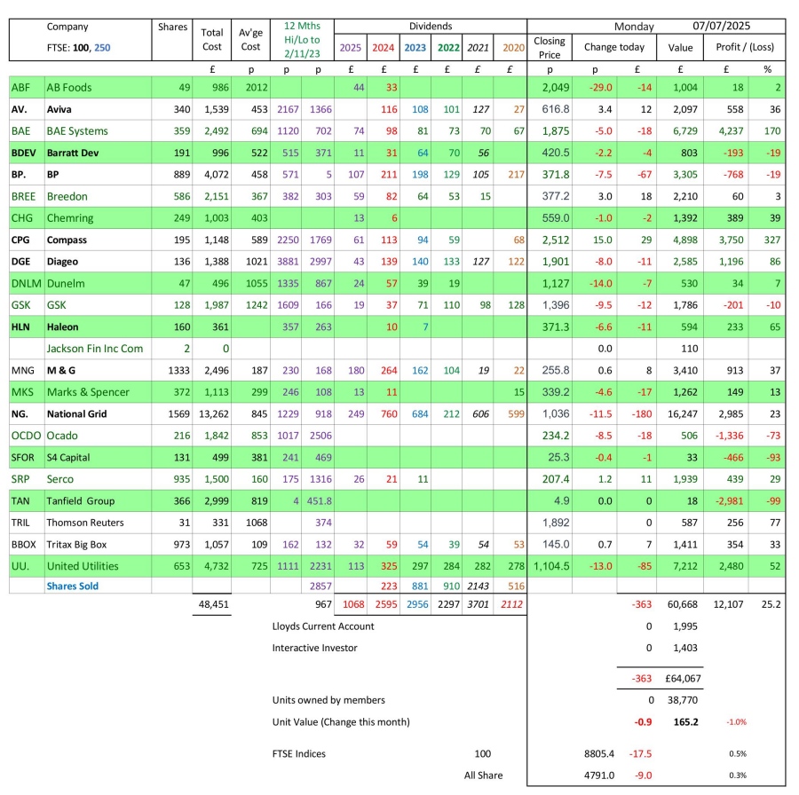 as at close of business Monday 7 July 2025