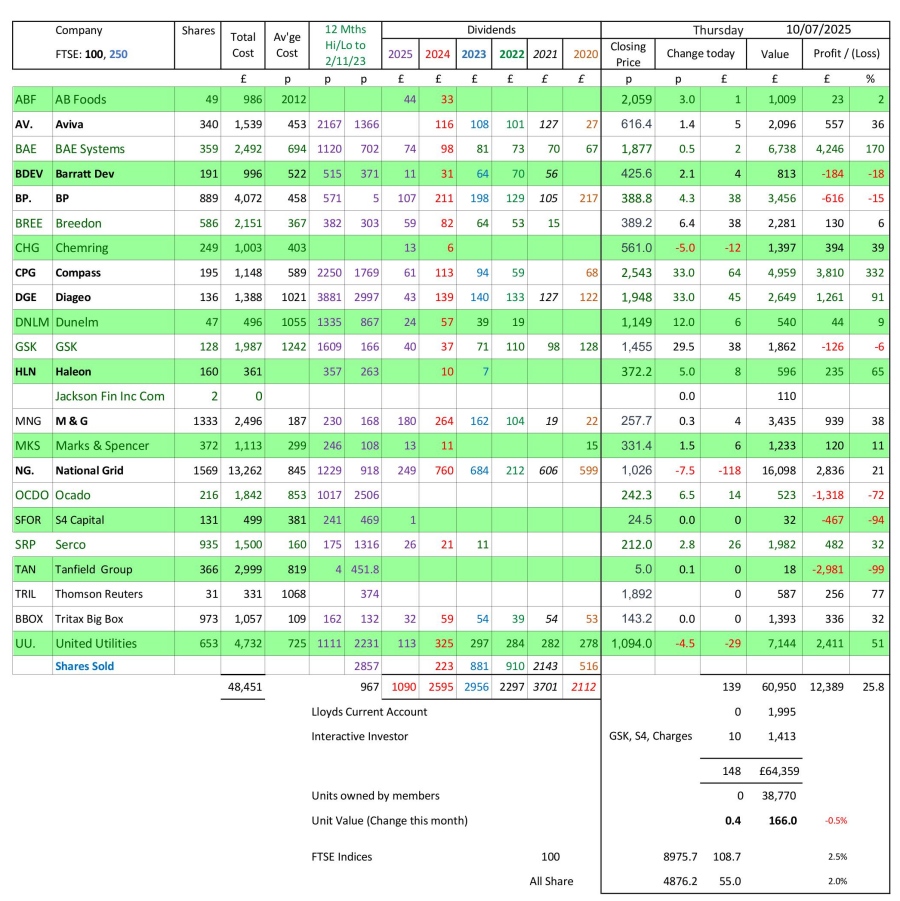 as at close of business Thursday 10 July 2025