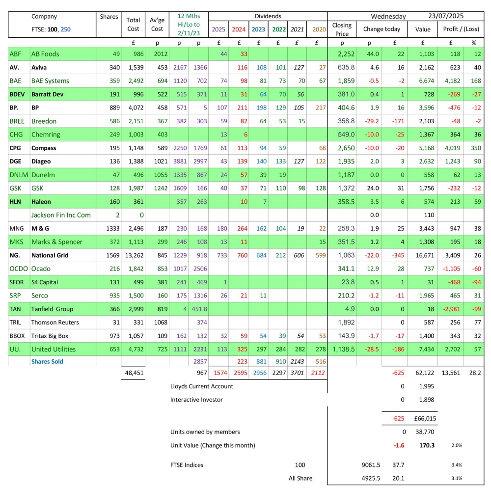 as at close of business Wednesday 23 July 2025