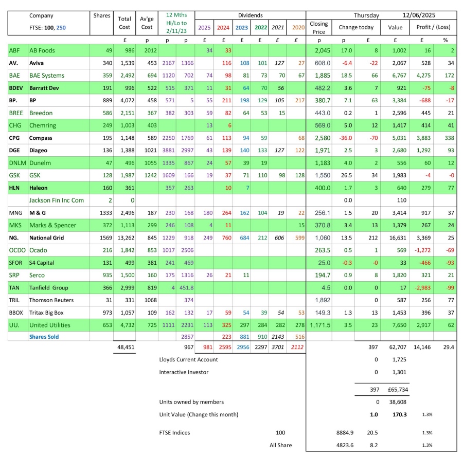 as at close of business Thursday 12 June 2025