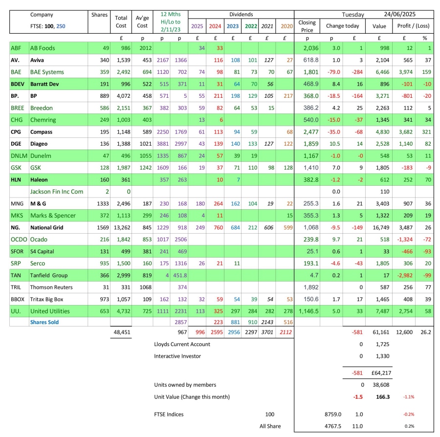 as at close of business Tuesday 24 June 2025