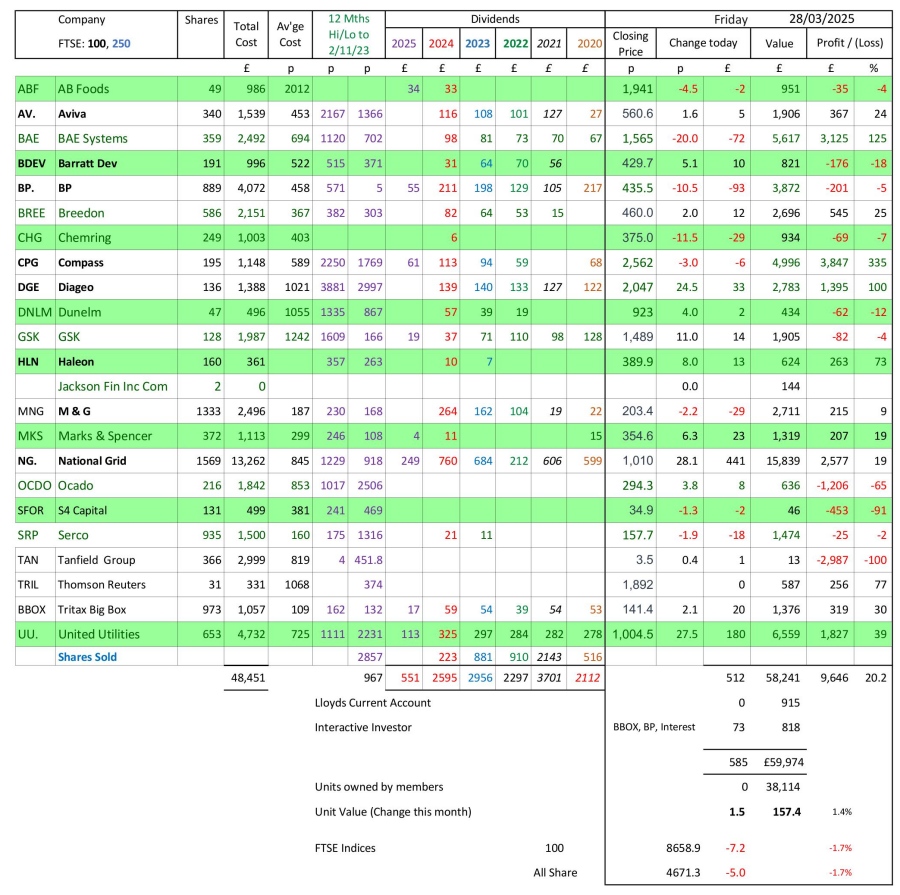 as at close of business Friday 28 March 2025