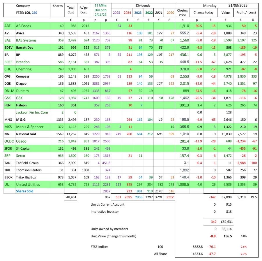 as at close of business Monday 31 March 2025