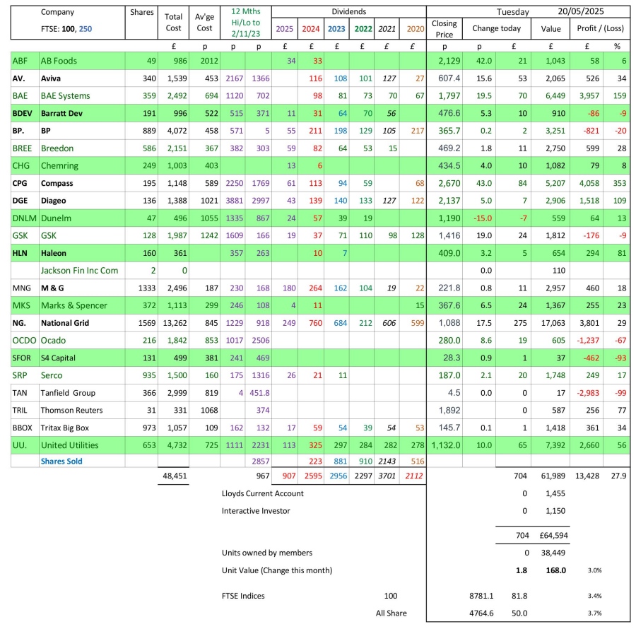 as at close of business Tuesday 20 May 2025
