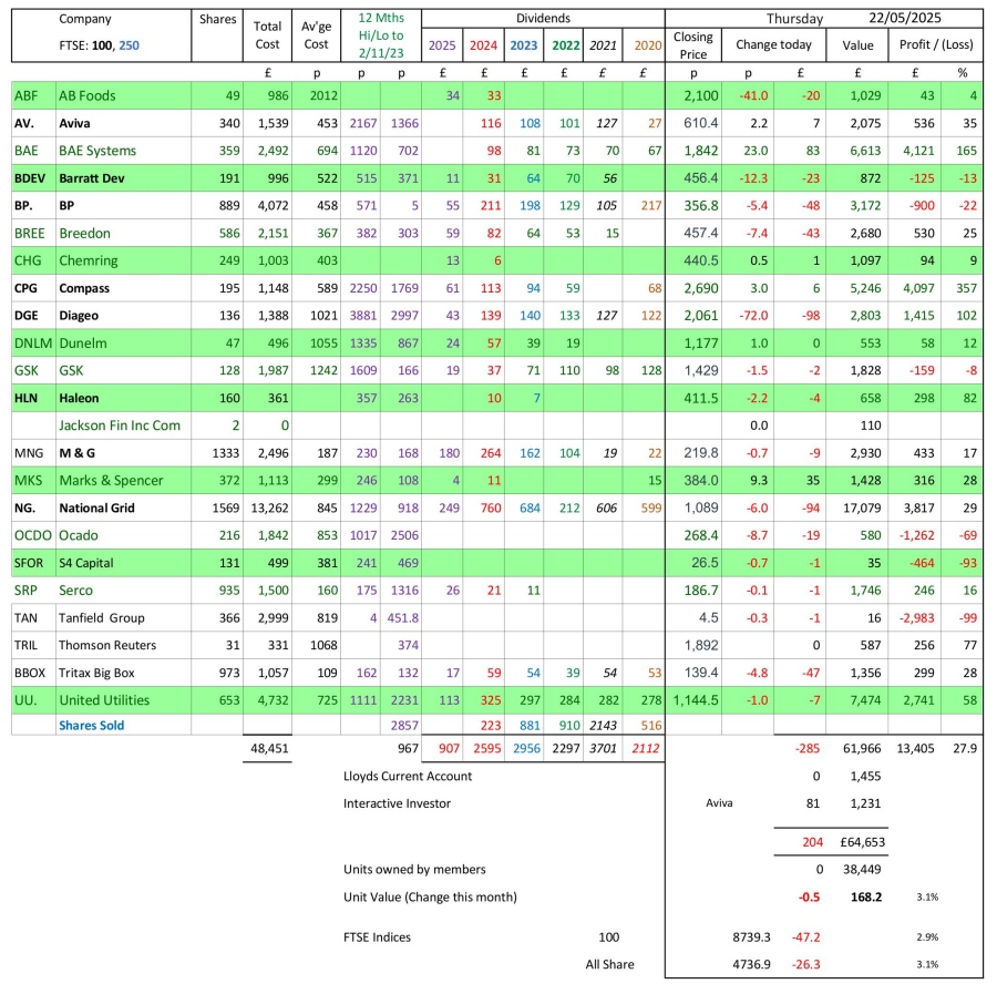 as at close of business Thursday 22 May 2025