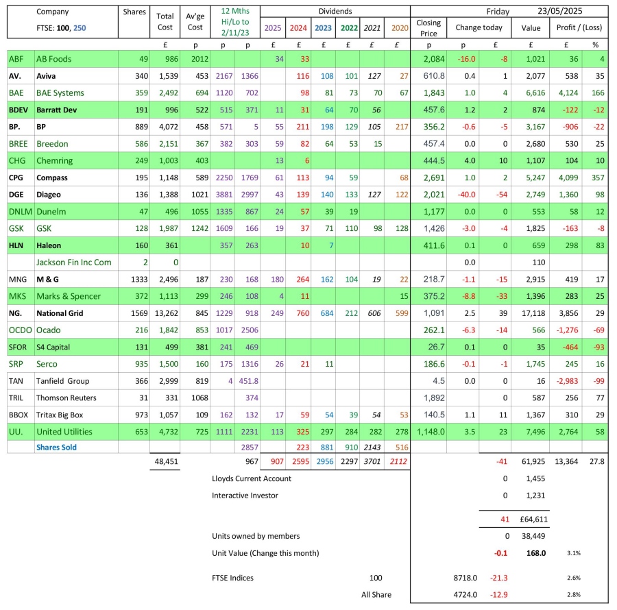 as at close of business Friday 23 May 2025
