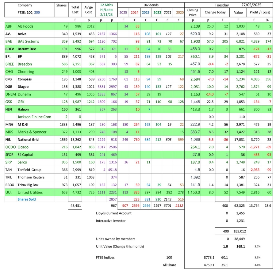 as at close of business Tuesday 27 May 2025