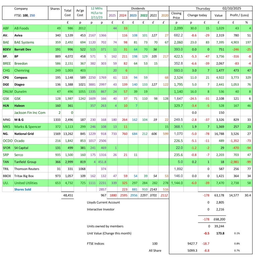as at close of business Thursday 2 October 2025