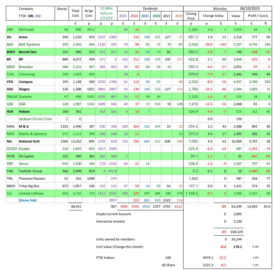 as at close of business Monday 6 October 2025