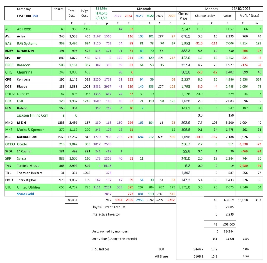 as at close of business Monday 13 October 2025