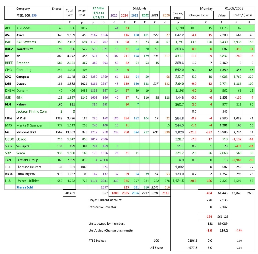 as at close of business Monday 1 September 2025