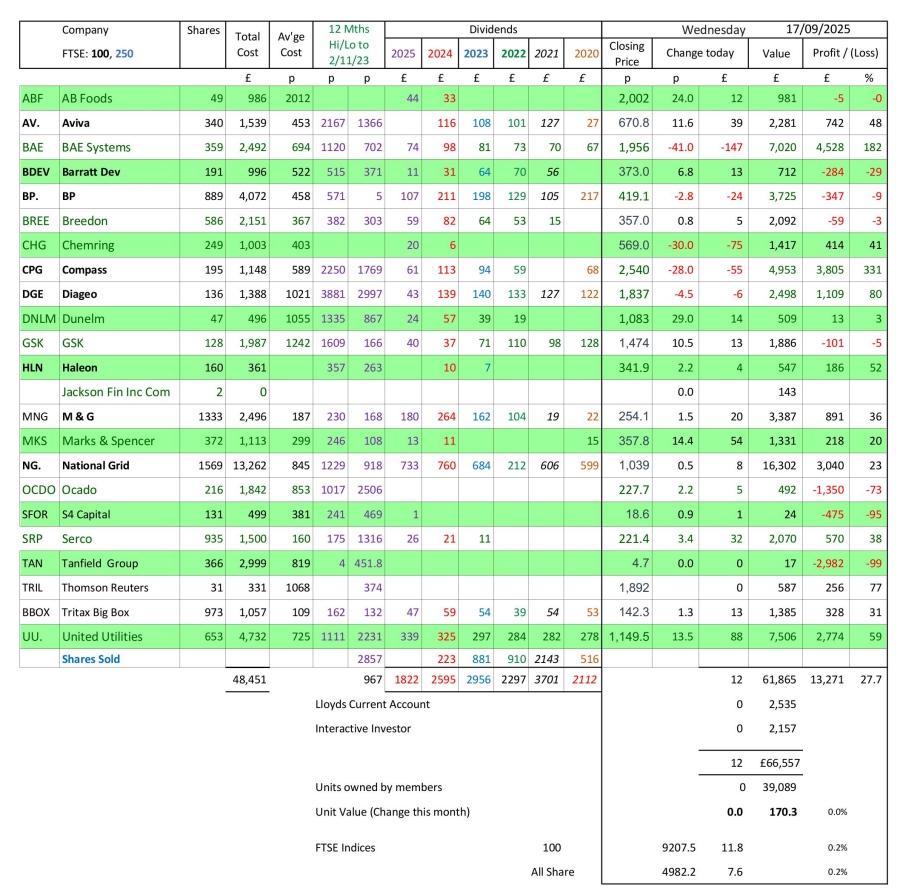 as at close of business Wednesday 17 September 2025