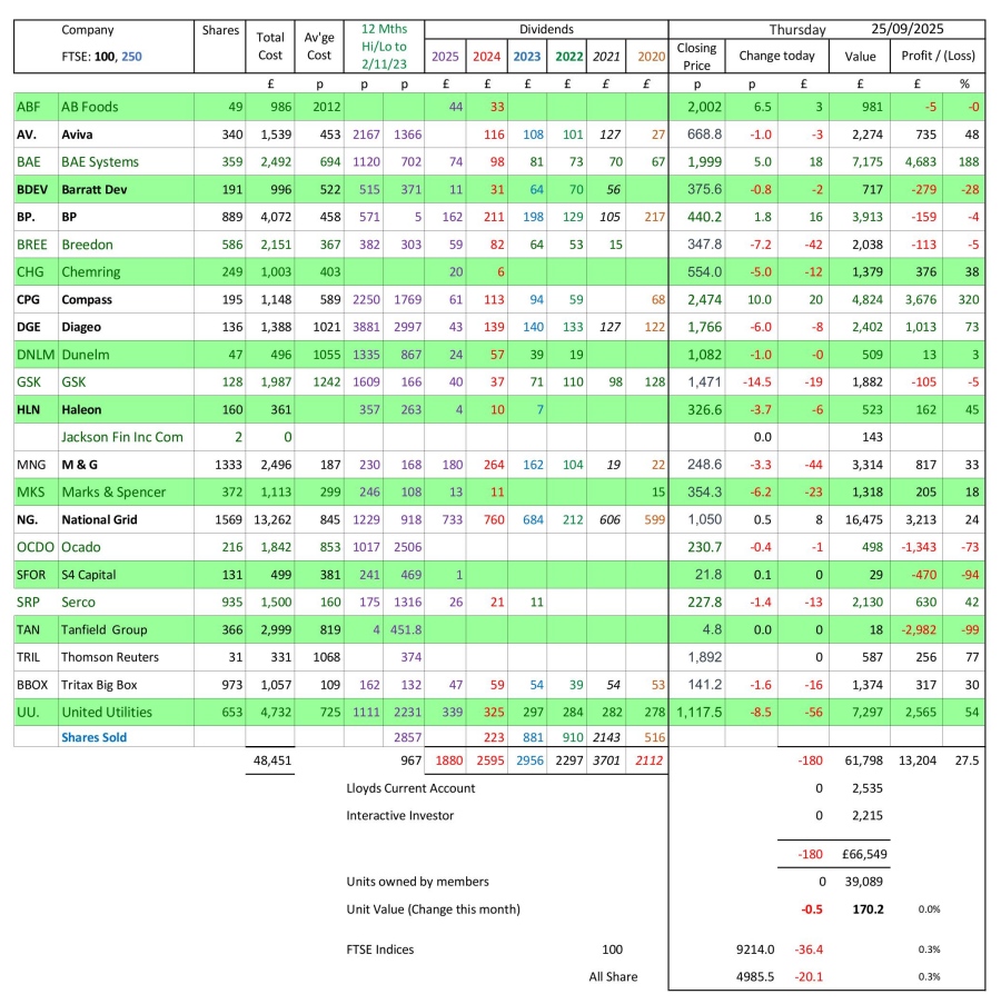 as at close of business Thurssday 25 September 2025