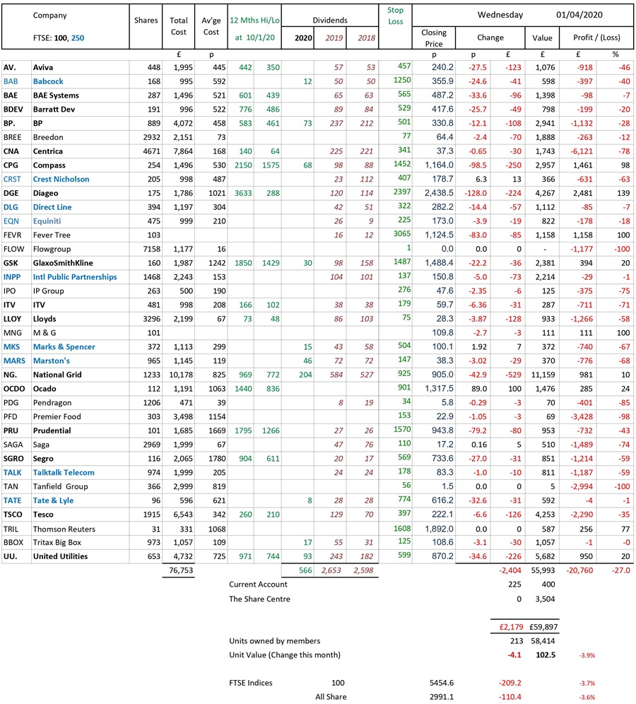 as at close of business Wednesday 1 April 2020