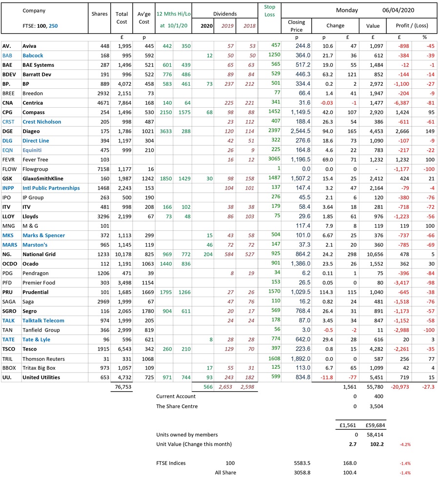as at close of business Monday 6 April 2020