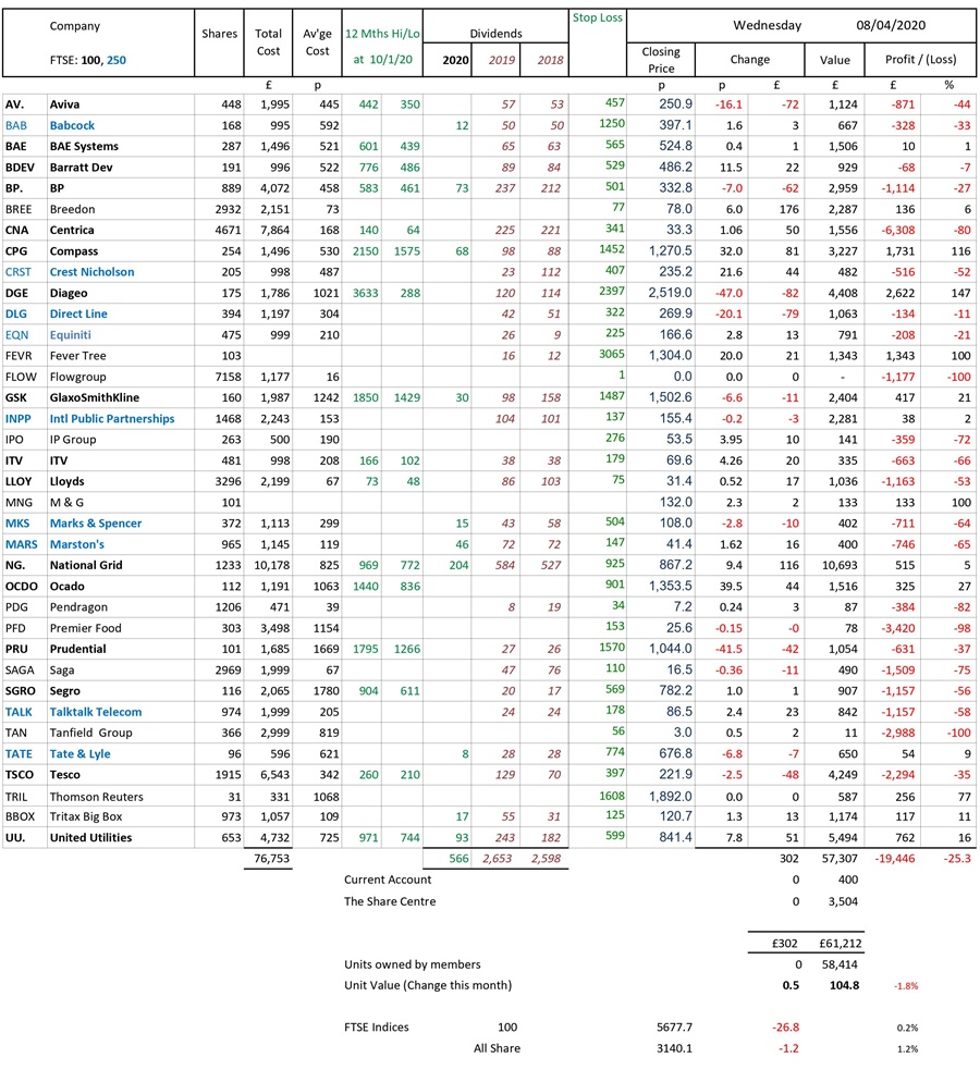 as at close of business Wednesday 8 April 2020