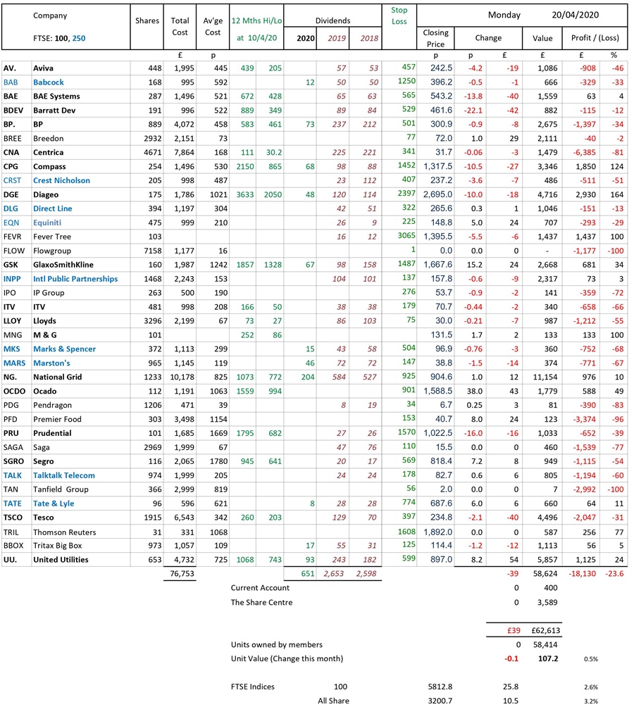 as at close of business Monday 20 April 2020