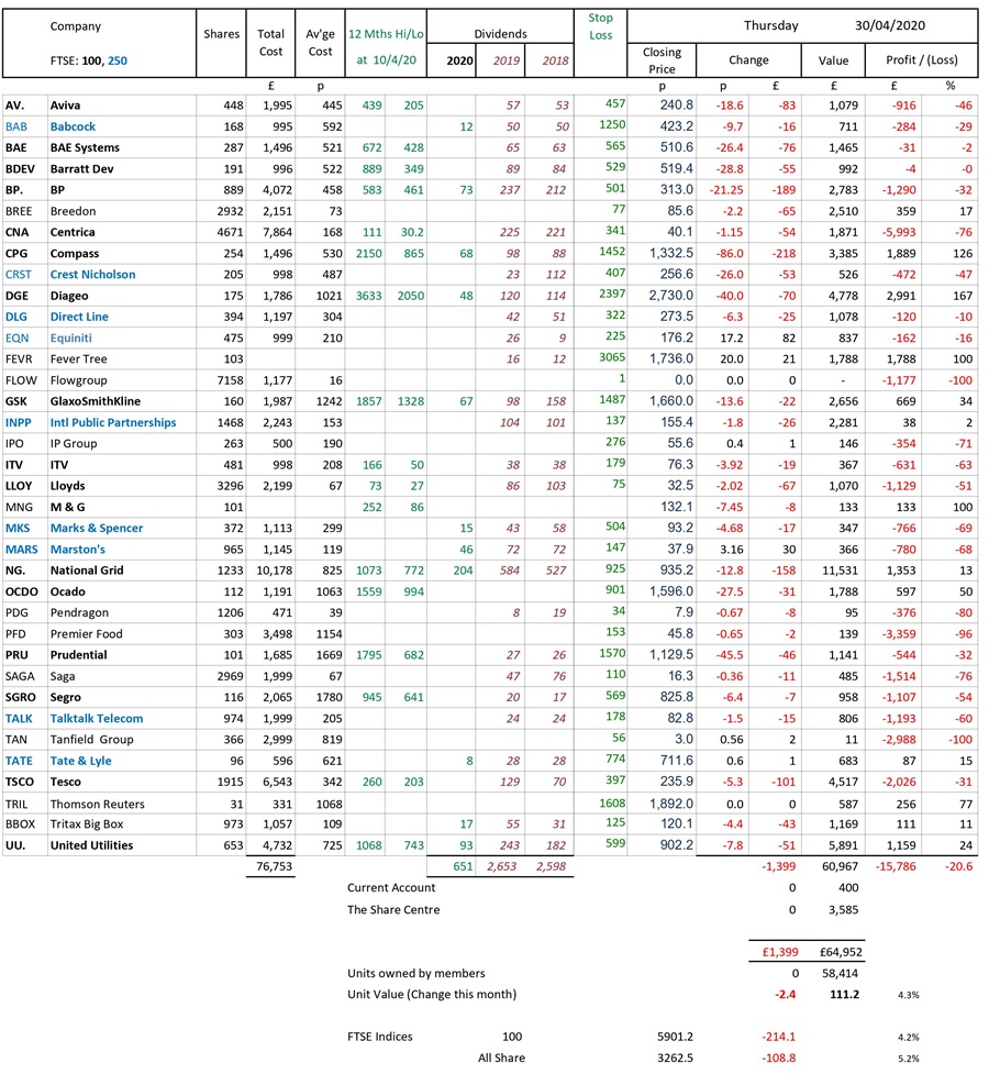 as at close of business Thursday 30 April 2020