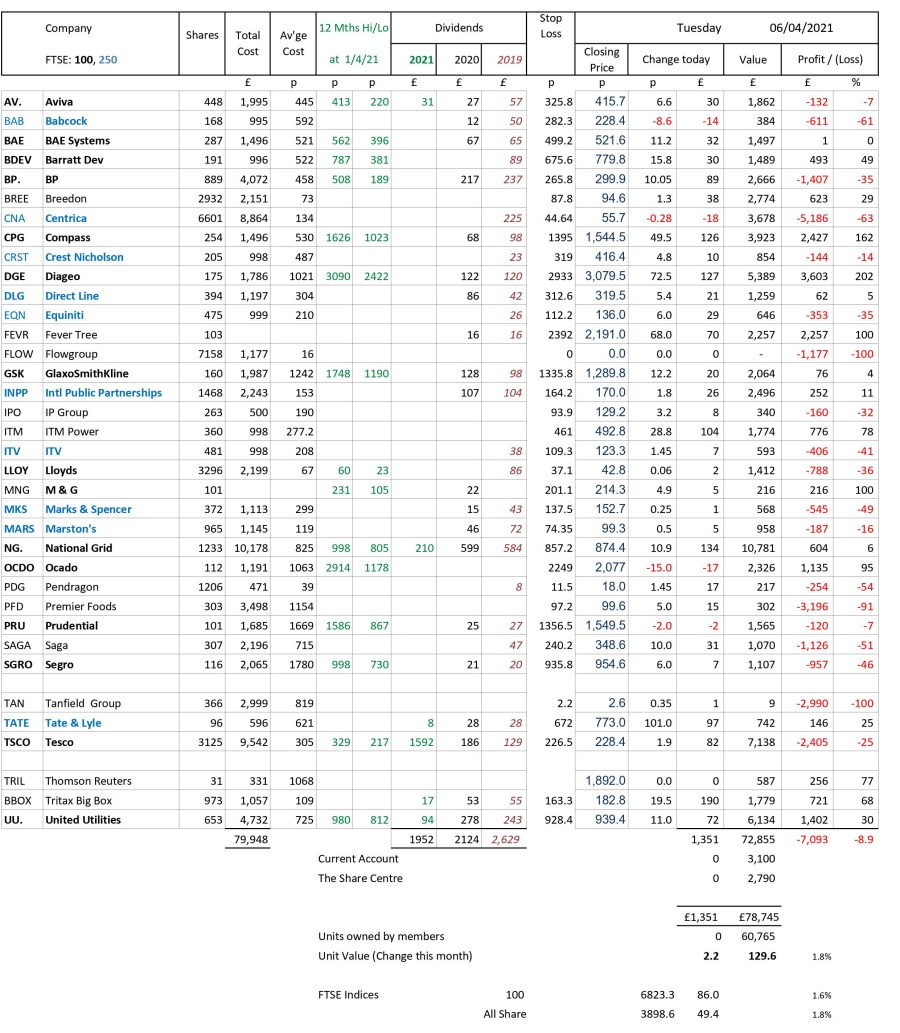 as at close of business Tuesday 6 April 2021