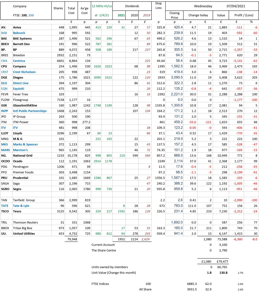 as at close of business Wednesday 7 April 2021
