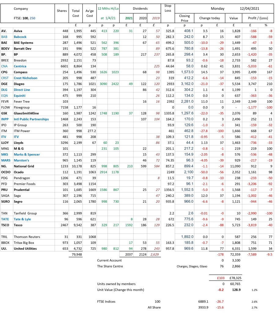 as at close of business Monday 12 April 2021