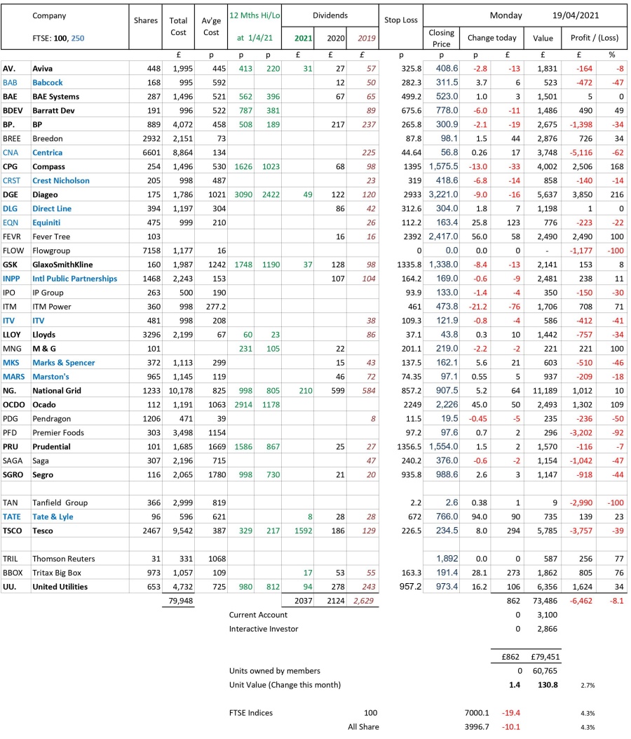 as at close of business Monday 19 April 2021