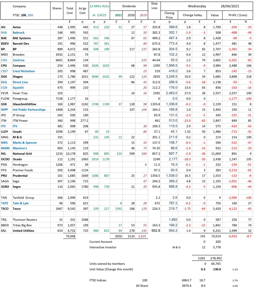 as at close of business Wednesday 28 April 2021