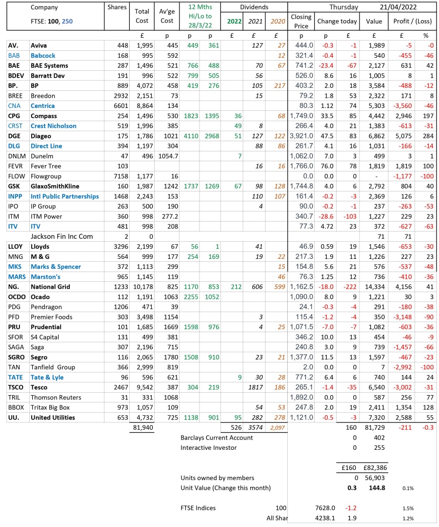 as at close of business Thursday 21 April 2022