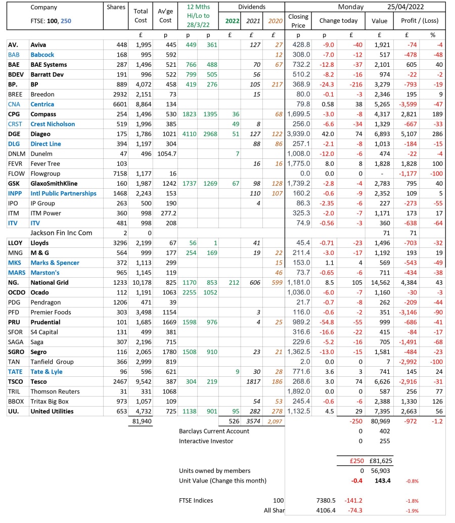 as at close of business Monday 25 April 2022