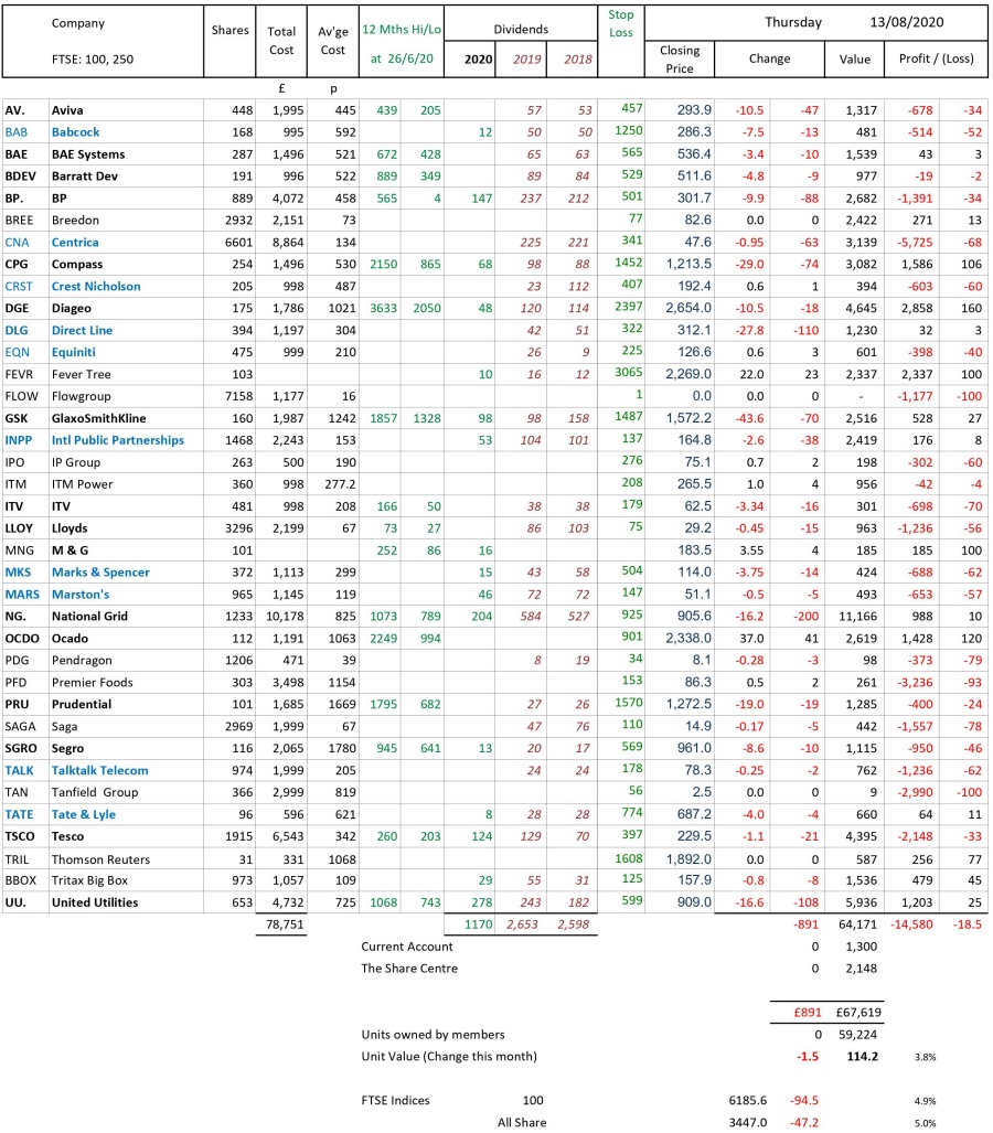 as at close of business Thursday 13 August 2020