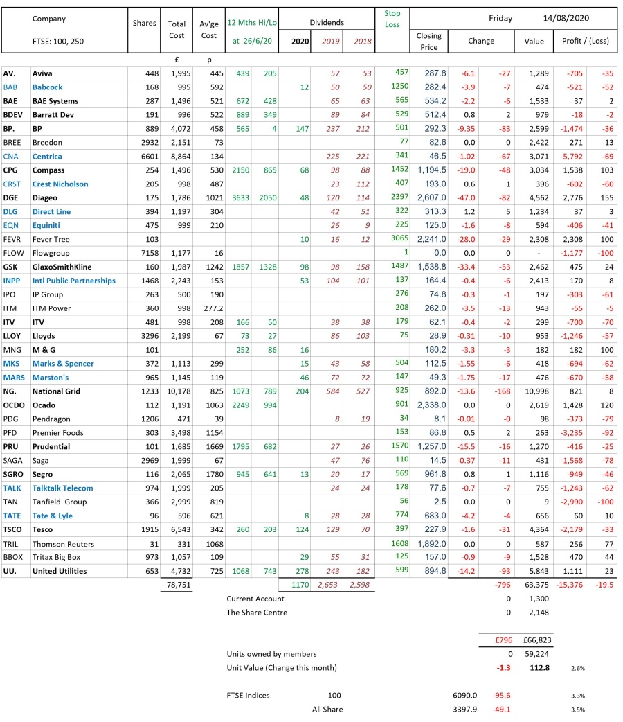as at close of business Friday 14 August 2020