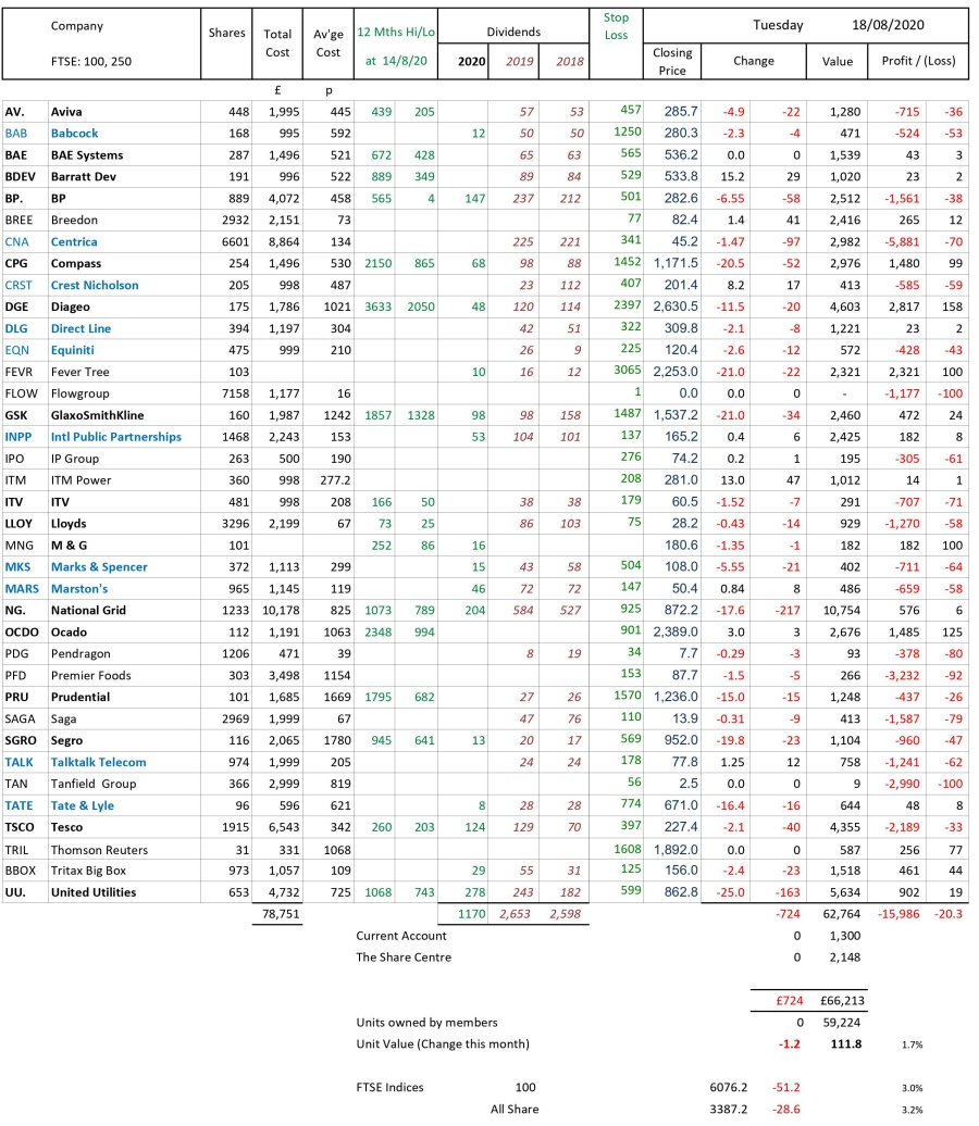 as at close of business Tuesday 18 August 2020